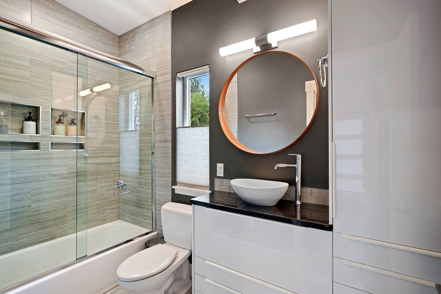 This home was custom built by the owner and it is evident at every turn. Though the house has a small footprint, it lives large and was featured by the Environmental Center of Bend for it's innovation, efficiency and quality construction. Hydronic heated floors throughout result in quiet, even comfort and a noticeably calm environment. Blackout shades let you set your own schedule in the sunny high desert. Exposed beams, solid doors, high ceiling, expert tilework -- this isn't your typical rental. The home has treetop views and even a glimpse of the river from the rear bedroom. But as they say, location, location, location! Being so near the river, yet also nearby access to the highway and downtown means you'll spend less time in the car and more time soaking up the Central Oregon outdoors.