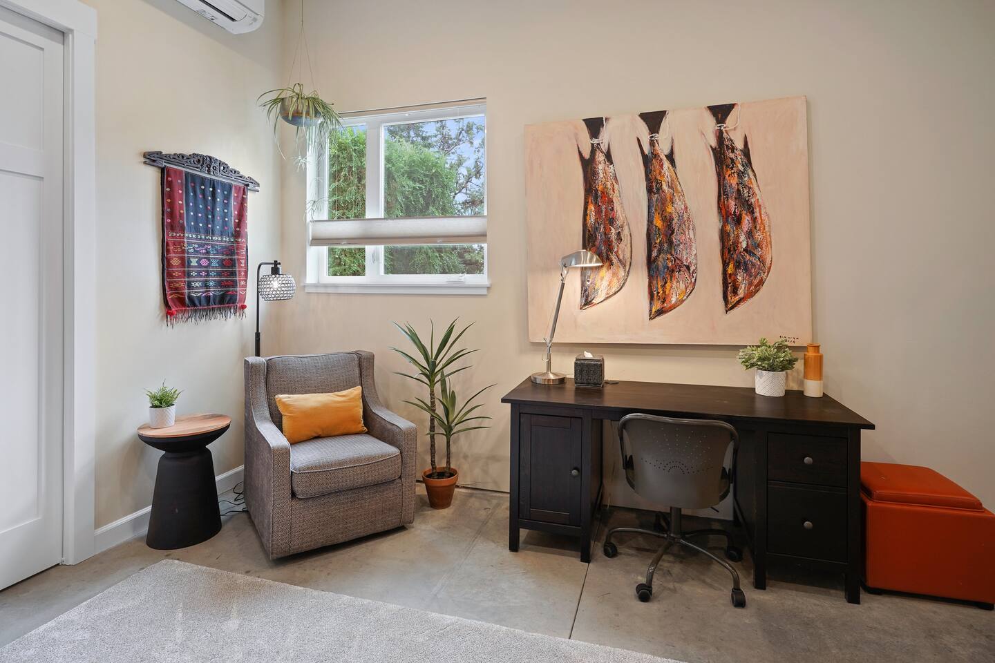 Please note that the laundry room (downstairs, very separate from the living space and fully lockable) will be used by our housekeeper during your stay. She is a professional and quiet. The laundry will only be used for a single load, between 11AM-2PM. Also note that there is another Airbnb in a next door house on the lot. The second story patio faces the Airbnb, so we do ask guests to be consciencious of noise when on the patio (no music, please). There is no shared wall or any shared spaces, but noting this for full transparency. The neighbor next door to the west is under construction. As of November 2024, the framing is completed and the roof is installed. Wildfire smoke is a significant risk in the mid-summer to late fall in the PNW, especially east of the Cascades. Please note that both Airbnb (and by extension, us as hosts) can not predict or control the weather or the smoke, and neither of these are considered grounds for exceptions to the refund policy. If you want a more flexible cancellation policy due to air quality/smoke, we recommend purchasing travel insurance through Airbnb, which is offered to you during the booking process. If your time in Bend is impacted by smoke, we are happy to help you make the best of it—there are often times of day or parts of the surrounding area that are far less smoky than others. We live here and understand the challenge.