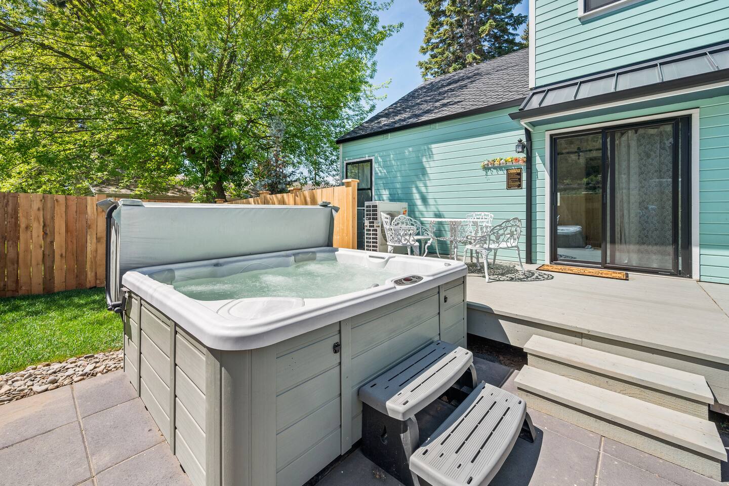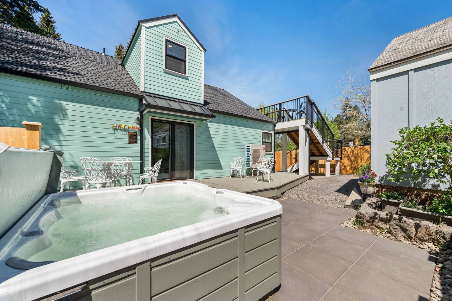 Welcome to the French Farmhouse, where rustic charm meets luxurious comfort in the heart of the Bend's Midtown. Step into a world of French provincial elegance as you enter our opulently decorated home. Adorned with tasteful furnishings and intricate details, Every corner exudes timeless beauty and sophistication. This 1940's home has been fully renovated and was the original farmhouse for this neighborhood. Indulge in the ultimate relaxation experience with our array of amenities, including a full kitchen for culinary adventures, a bubbling hot tub for unwinding under the stars, and a luxurious bathtub for soothing soaks. Retreat to the master suite for a peaceful night's sleep in plush surroundings, and awaken refreshed to the gentle sounds of nature. Outside, our private backyard offers a place to enjoy Central Oregon's beautiful climate, perfect for al fresco dining. Whether you're seeking a romantic getaway or an adventure-filled escape, the French Farmhouse invites you to experience the epitome of French-inspired luxury. This home is chock full of wonderful details, including 100% cotton sheets, silk eye masks and white noise machines for deep sleep. The kitchen is fully equipped with high quality pots and pans and plenty of unique glassware and dishware. The middle bedroom has a nice queen sofa bed.